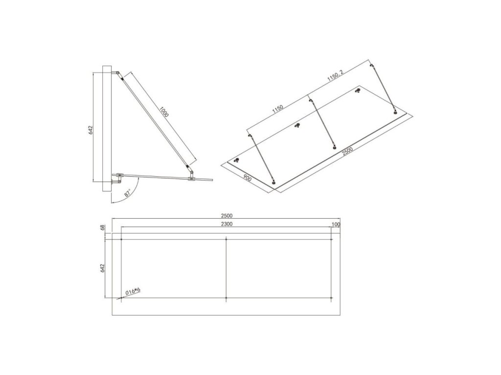 Skleněnou stříšku lze namontovat pod úhlem sklonu cca 3°. Díky sklonu může voda a sníh odtékat.